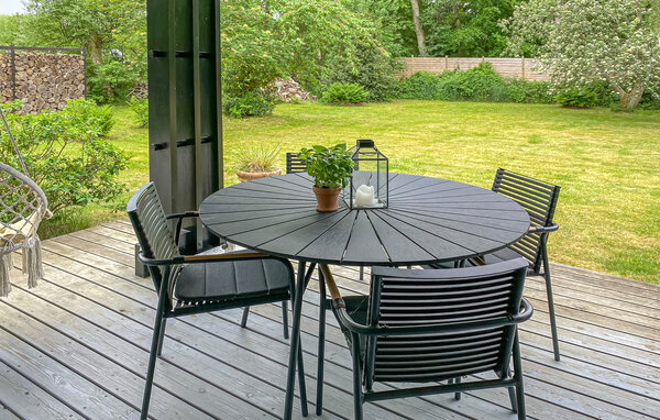 Ude på den overdækkede terrasse er det også skønt at samles til en afslappende stund. Trænger I til at komme op at stå, er der plads til hyggelige aktiviteter på græsplænen. Snup en omgang gemmeleg med børnene eller slip dem løs på trampolinen. Sidst på dagen kan I tænde bål i haven og sidde ude, til stjernene titter frem.