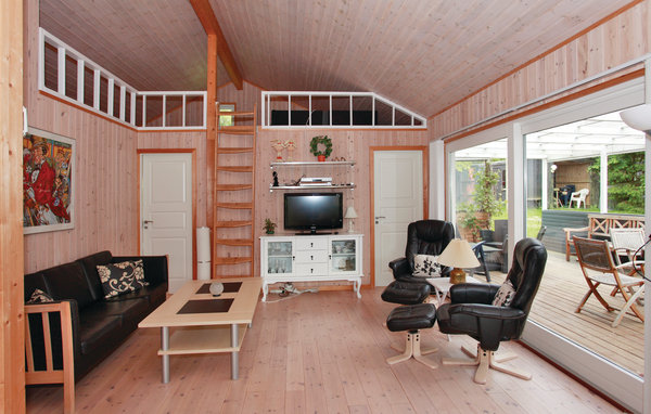 Klassisk feriehus med to soveværelser, en hems hvor børnene kan ligge og hygge og læse, et åbent køkken i kombination med spisestue/stue, samt både en åben og overdækket terrasse, hvor solen kan nydes i fulde drag.