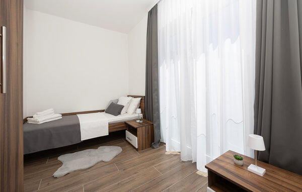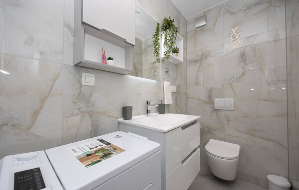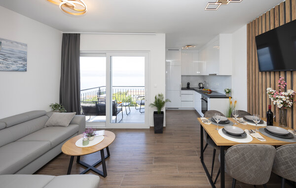 Denne moderne lejlighed tilbyder alt hvad I behøver for et behageligt ophold. Nyd den ideelle beliggenhed kun få minutters gang fra stranden og den nære beliggenhed til restauranter, caféer og butikker. Gør det behageligt i den store sofa i opholdsstuen, nyd måltiderne sammen ved spisebordet, og tilbered lækre retter i køkkenet. Lejligheden har også direkte adgang til terrassen med udsigt over Adriaterhavet.