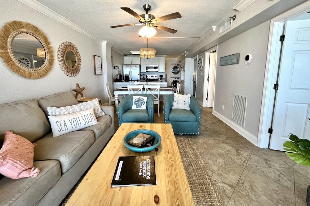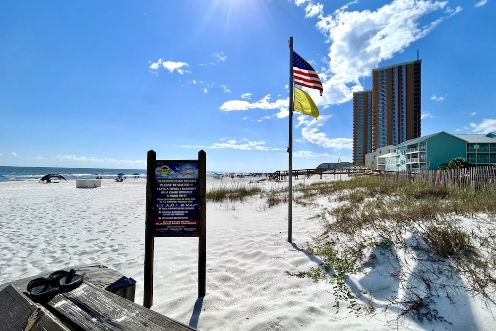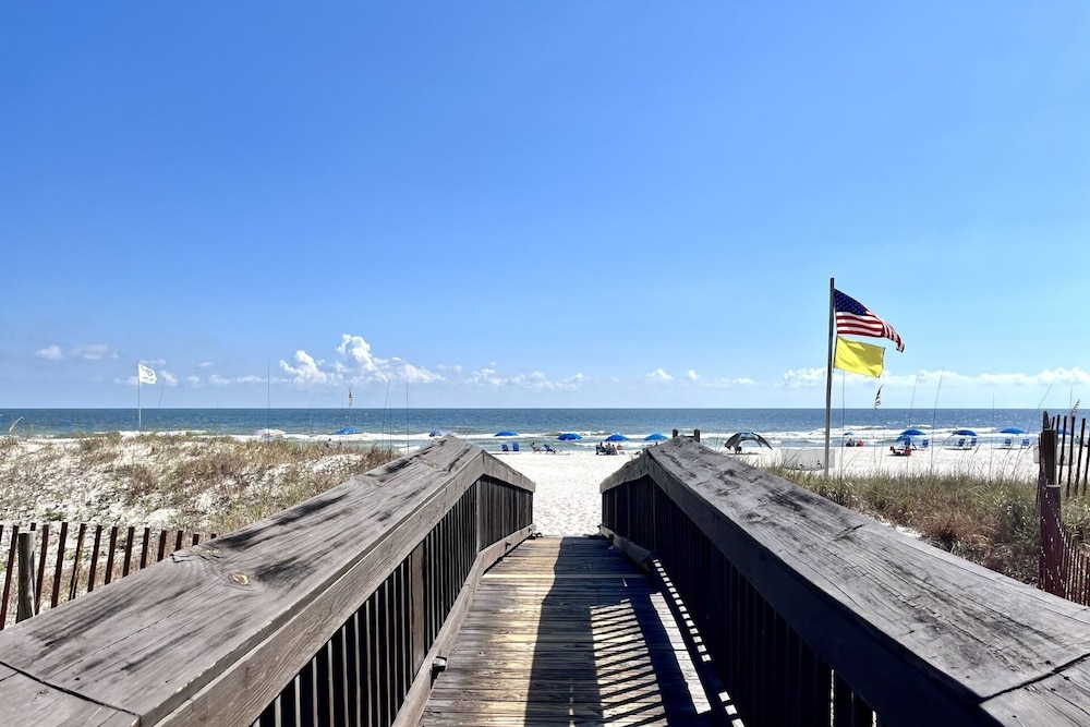 Overnatter du ved denne lejlighed, som ligger på stranden i Orange Beach, er du kun 4 minutters gang fra Orange Beach Strande og 6 minutters gang fra Gulf State Park. Denne lejlighed med golffaciliteter ligger 5,1 km fra Gulf Shores Strand og 11,7 km fra Perdido Key Beach. Find dig til rette i denne lejlighed, som har et køleskab. Der er gratis Wi-Fi, så du altid kan komme på nettet. Badeværelset har et badekar eller en bruser.Faciliteter inkluderer blandt andet en kaffe/temaskine og en vaskemaskine. De viste afstande er afrundet til nærmeste 0,1 kilometer.