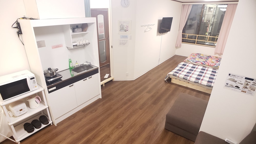 Fra Osaka Namba House, som ligger i hjertet af Osaka, er det kun fem minutters kørsel til Tsutenkaku-tårnet og Shitennoji-templet. Denne lejlighed ligger 3,6 km fra Osakas-historiemuseum og 4,9 km fra Osaka Slot. Føl dig hjemme i et af de 3 værelser, der er indrettet med individuelt design, og som desuden indeholder tekøkken med køleskab og mikrobølgeovn. Der er et 32-tommers LCD-tv med kabelkanaler, som sørger for underholdningen, og med gratis Wi-Fi kan du altid komme på nettet. Faciliteter inkluderer separate siddeområder og riskogere, og rengøring udføres en gang pr. ophold. De viste afstande er afrundet til nærmeste 0,1 kilometer.