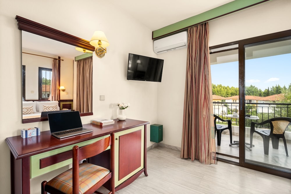 Chrousso Village ligger i landlige omgivelser i Kassandra, kun 15 minutters gang fra Chroúsou Strand og Xenia strand. Dette hotel med familievenlig profil ligger 4,2 km fra Pefkochori lagune og 5,1 km fra Port Glarokavos. Føl dig hjemme i et af de 200 værelser, der indeholder køleskab. Værelserne har privat møbleret balkon eller terrasse. Værelset har et privat badeværelse med gratis toiletartikler og hårtørrer. Faciliteter inkluderer telefoner samt pengeskabe og skriveborde. De viste afstande er afrundet til nærmeste 0,1 kilometer.