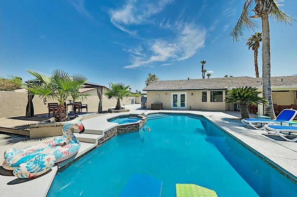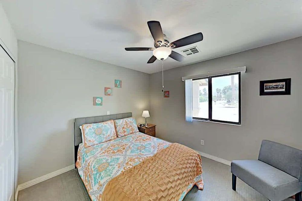 Fra denne feriebolig i Palm Springs (Gene Autry) er der kun 15 minutters kørsel til Palm Springs Convention Center og Agua Caliente Casino. Dette feriested med golffaciliteter ligger 10,9 km fra Palm Springs Svævebane og 3,5 km fra Palm Springs Air Museum. Forkæl dig selv med et ophold i denne feriebolig med individuelt design, som har både en privat pool og et udendørs privat boblebad. Der er en privat møbleret terrasse. Et køkken er udstyret med et køleskab, en ovn og en kogeplade. Der er et 42-tommers fladskærms-tv med digitale kanaler, som sørger for underholdningen. De viste afstande er afrundet til nærmeste 0,1 kilometer.