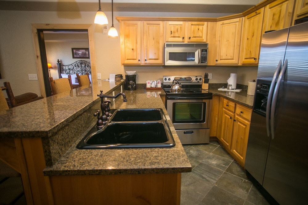 Fra denne lejlighed i Park City (Canyons Village at Park City) er der kun 4 minutters kørsel til Park City Mountain Resort og 7 minutters kørsel til Main Street. Denne lejlighed med golffaciliteter ligger 11,9 km fra Deer Valley Resort og 0,4 km fra Canyons Parking Lot. Find dig til rette i denne lejlighed med aircondition, som har både en pejs og et fladskærms-tv. Der er en privat terrasse. Et køkken er udstyret med et køleskab/fryser i fuld størrelse, en ovn og en kogeplade. Der er både en dvd-afspiller og kabelkanaler, som du kan underholde dig med, samt gratis Wi-Fi og internetforbindelse via kabel. De viste afstande er afrundet til nærmeste 0,1 kilometer.