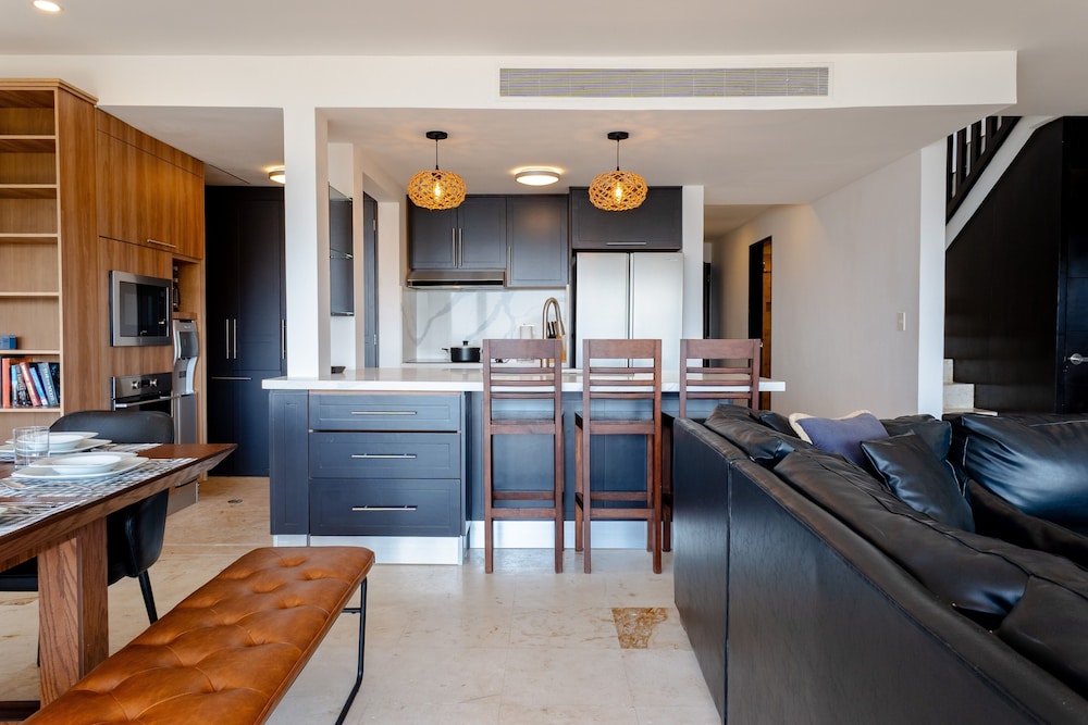 Fra Elements Penthouse 23 3 Bedroom Condo by RedAwning i Playa del Carmen (El Pedregal) er der kun 5 minutters kørsel til Quinta Avenida og Playa del Carmen Maritime Terminal. Dette hotel med golffaciliteter ligger 2,7 km fra Playa del Carmen Main Beach og 9,5 km fra Xplor Theme Park. Føl dig hjemme i et af de aircondition-afkølede værelser, der desuden indeholder køleskab. Med gratis Wi-Fi kan du altid komme på nettet. Der er badekar eller bruser på badeværelserne. Faciliteterne inkluderer kaffe-/temaskiner og vaskemaskiner. De viste afstande er afrundet til nærmeste 0,1 kilometer.