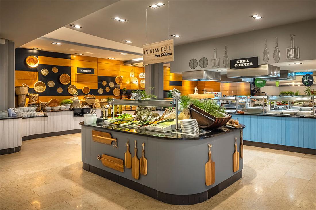 Hotellets poolbar og lyse restaurant serverer retter fra Istrien. Du kan frit vælge, om du vil spise dine måltider på terrassen eller i spisestuen.