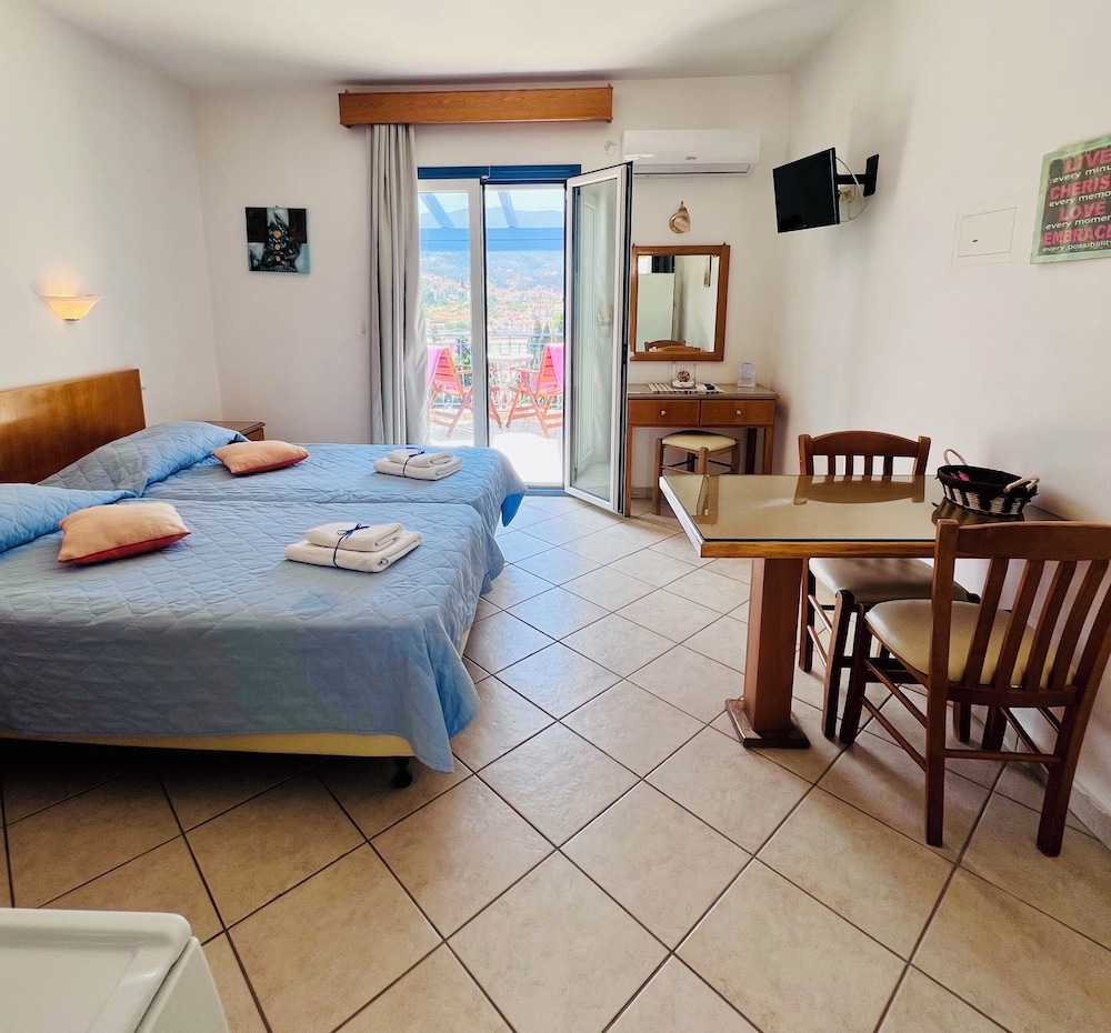 KTM Sunny Villas ligger tæt på stranden i Poros. Herfra er der blot 3 minutters gang til Kanali-stranden og 8 minutters gang til Askeli Strand. Dette gæstehus ligger 1,2 km fra Poros Færgeterminal og 1,5 km fra Klokketårnet i Poros. Føl dig hjemme i et af de 14 aircondition-afkølede værelser, der indeholder køkken med køleskab/fryser i fuld størrelse og kogeplade. Værelserne har privat balkon med møbler. Med gratis Wi-Fi kan du altid komme på nettet. Faciliteter inkluderer pengeskabe og skriveborde, og rengøring udføres dagligt. De viste afstande er afrundet til nærmeste 0,1 kilometer.