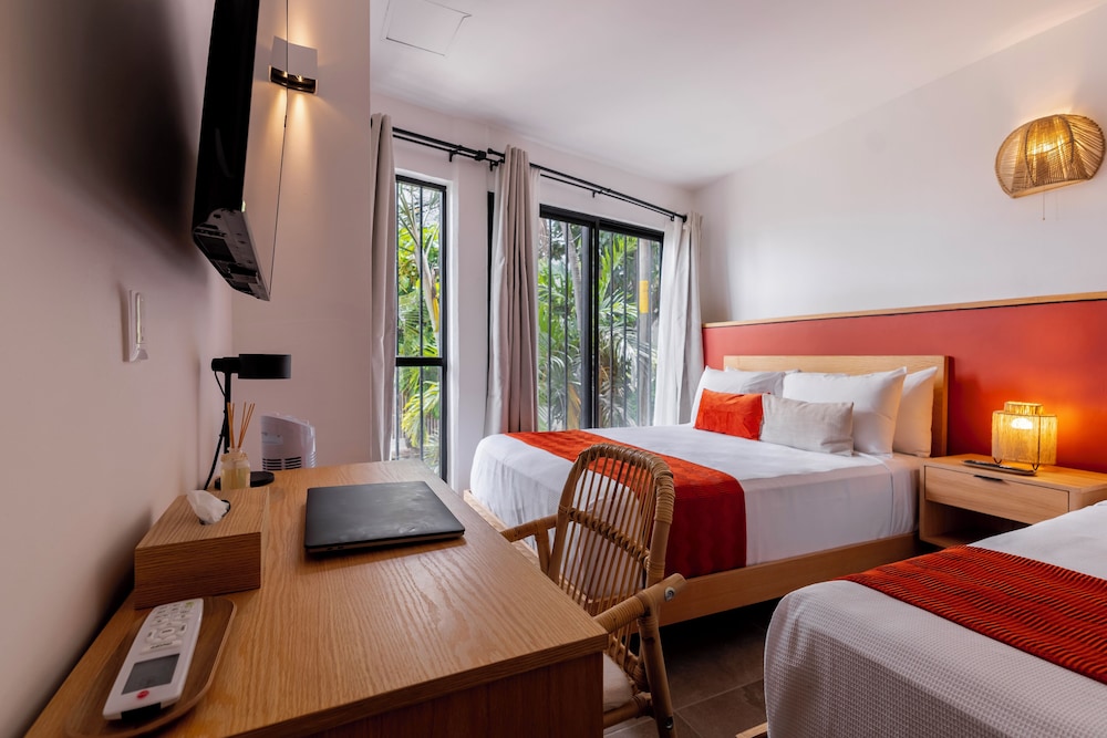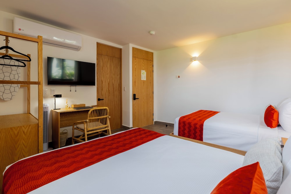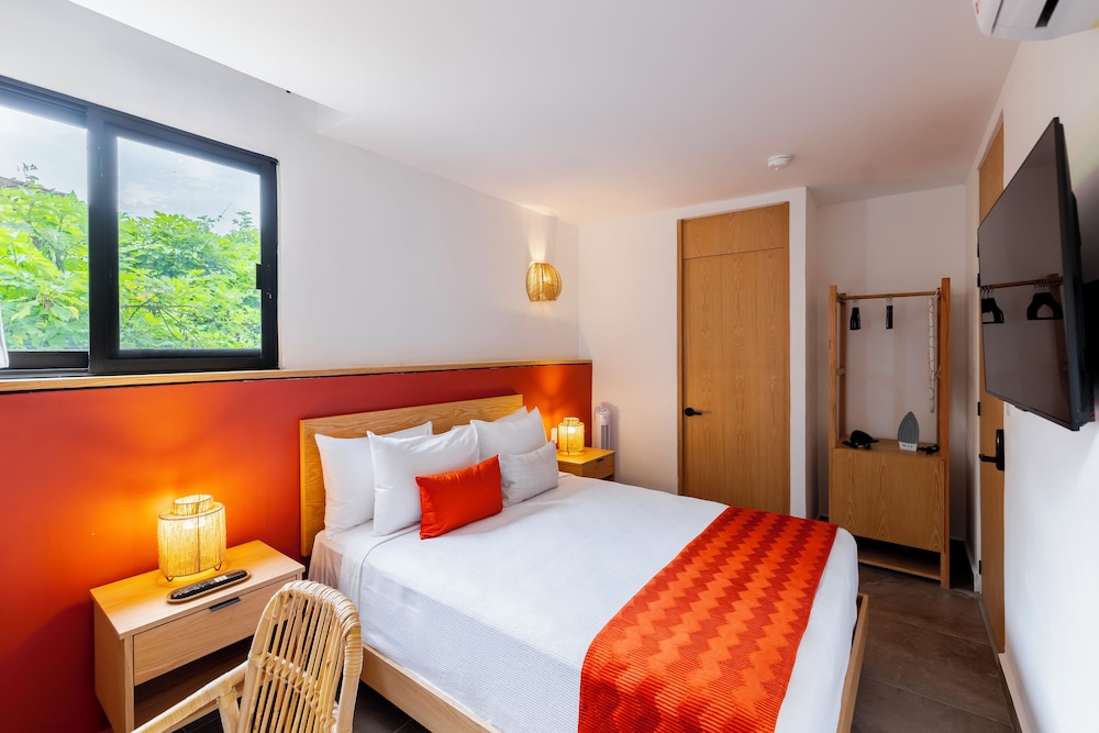Fra Raices Nomadas Boutique Hotel Vallarta, som ligger i Puerto Vallarta (Puerto Vallarta Centrum), er der kun 15 minutters gang til Malecón og Banderas-bugten. Dette hotel ligger 1,2 km fra Playa de los Muertos og 5,6 km fra Krydstogtsterminal. Overnat i et af de 10 værelser, der indeholder LED-tv. Med gratis Wi-Fi kan du altid komme på nettet, og digitale kanaler sørger for underholdningen. Værelset har et privat badeværelse med bruser samt gratis toiletartikler og hårtørrer. Faciliteterne inkluderer bordvifter og strygejern/strygebrætter. De viste afstande er afrundet til nærmeste 0,1 kilometer.
