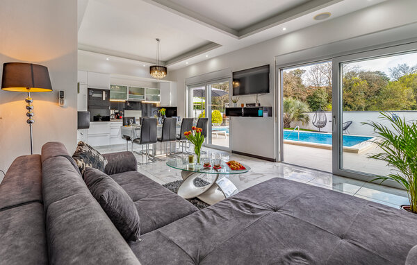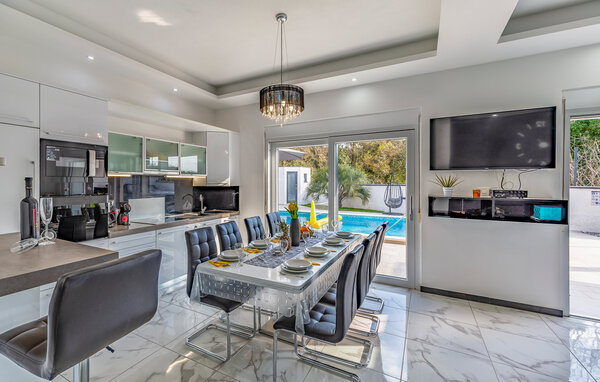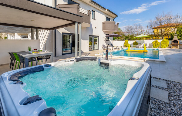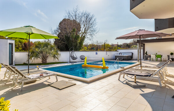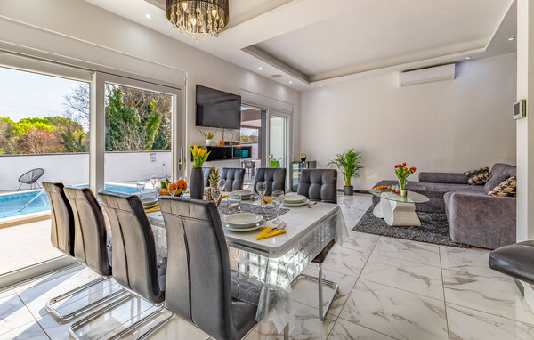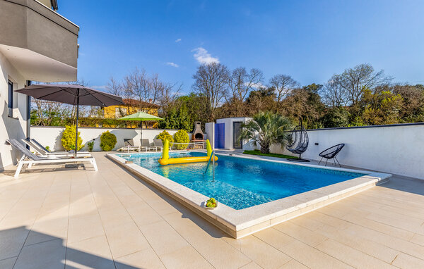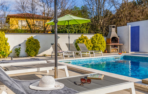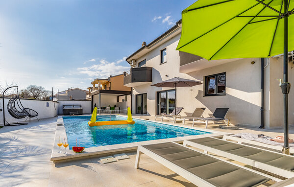 I den lille by Štinjan, ikke langt fra Pula, ligger dette dejlige hus med privat tilhørende pool. De rolige omgivelser er perfekte til en afslappet ferie. Husets er fordelt på to etager der er bekvemt indrettet med stue i åben forbindelse med køkken og spiseafdeling, et gæstetoilet og et soveværelse med badeværelse en suite i stueplan. En sauna i huset skaber de perfekte rammer for velvære og afslapning. Fra stuen er der en dejlig udsigt over både poolen og haven. På første sal er der tre soveværelser, hver med balkon, det ene soveværelse har badeværelse en suite og de to andre deles om et badeværelse nummer to. I haven står grillen parat til nem og lækker mad og mens maden steger færdig, kan I tage en dejlig svømmetur i poolen.