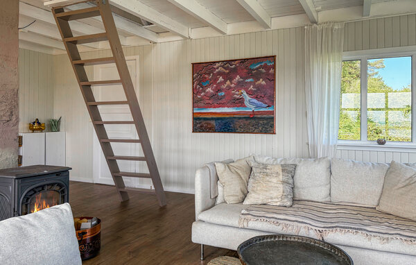 Dette velindrettede feriehus byder jer velkommen med en lys og venlig atmosfære, hvor I vil føle jer hjemme fra første dag. Tryll lækre måltider frem ved det indbydende spisebord. Tænd pejsen, kig ud over fjorden, mens I nipper til en varm kop te, og nyd tiden med familien til harmoniske spilleaftener eller hyggelig læsning på sofaen.