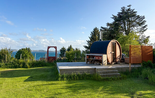 I den velholdte have kan børnene legende udforske naturen, mens I forkæler jer selv med afslappende øjeblikke i saunaen eller griller.