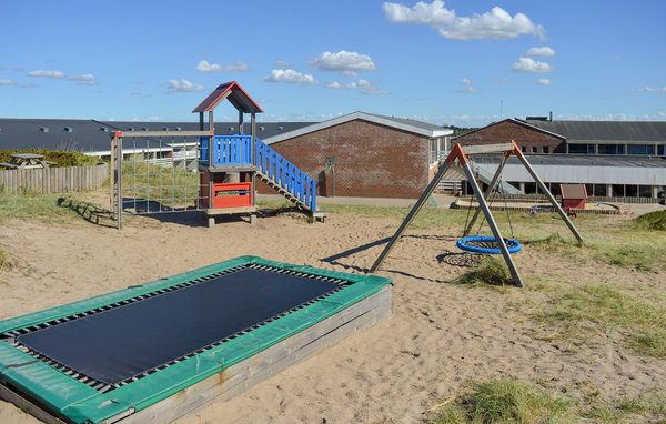 Det smukke Vesterhav ligger kun 150 m fra lejligheden, legepladsen ligger så I kan kigge derhen, når I står i hoveddøren: Indkøbsmuligheder, shopping og bager med friskbagt brød, er lige om hjørnet. Lejligheden ligger på 1. sal, og er velindrettet med en rummelig gang, et fint soveværelse med dobbeltseng, badeværelse med brus, et stort åbent rum med køkken, spiseafdeling og stue, herfra er der adgang til den overdækkede altan, fra stuen går en trappe op til et åbent værelse, hvor de sidste fire sovepladser befinder sig. Her er både en dobbeltseng og en sovesofa med plads til to gæster.