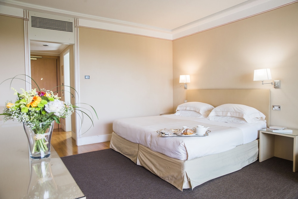 Overnatter du ved Hotel Acquaviva del Garda, som ligger ved en sø i Desenzano del Garda, er du kun 15 minutters kørsel fra Gardaland og Scaligero Slot. Dette hotel med spa ligger 14,3 km fra Gardaland SEA LIFE Akvarium og 16,5 km fra Movieland Park. Føl dig hjemme i et af de 84 værelser, der indeholder minibar og fladskærms-tv. Et tv med satellitkanaler sørger for underholdningen. Værelset har et privat badeværelse med badekar eller bruser samt gratis toiletartikler og bidet. Faciliteter inkluderer telefoner samt pengeskabe og skriveborde. De viste afstande er afrundet til nærmeste 0,1 kilometer.