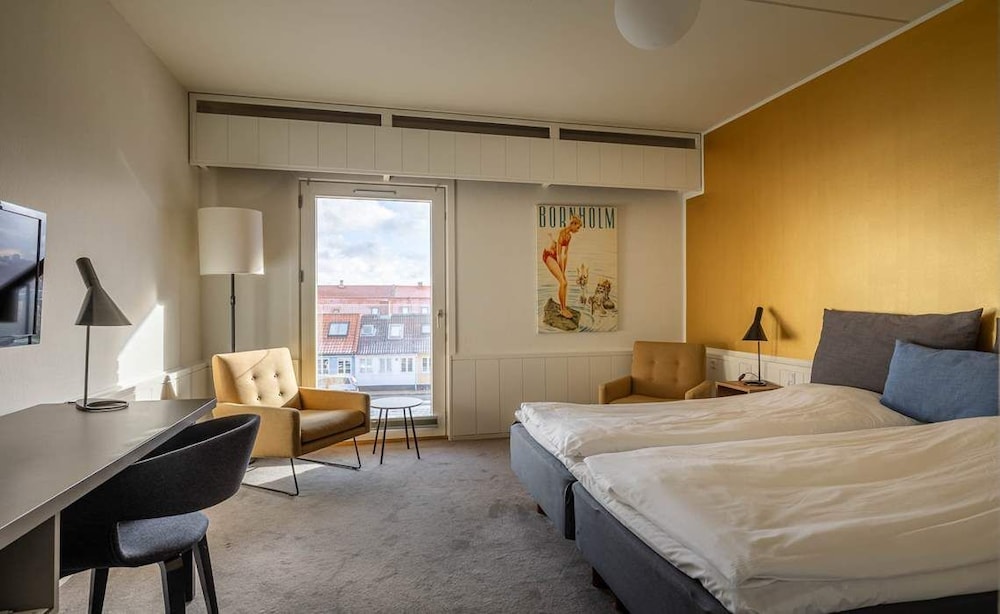 Med et ophold hos Griffen Spahotel har du en base i hjertet af Ronne, kun få skridt fra Den Bornholmske Diamant Spa og 7 min. gang fra Erichsens Gård. Dette hotel med spa ligger 0,9 km fra Keramisk Museum og 1 km fra Bornholms Velkomstcenter. Overnat i et af de 138 værelser, der indeholder fladskærms-tv. Med gratis Wi-Fi kan du altid komme på nettet. Værelset har et privat badeværelse med bruser samt gratis toiletartikler og hårtørrer. Faciliteter inkluderer skriveborde og kaffe-/temaskiner, og rengøring udføres dagligt. De viste afstande er afrundet til nærmeste 0,1 kilometer.