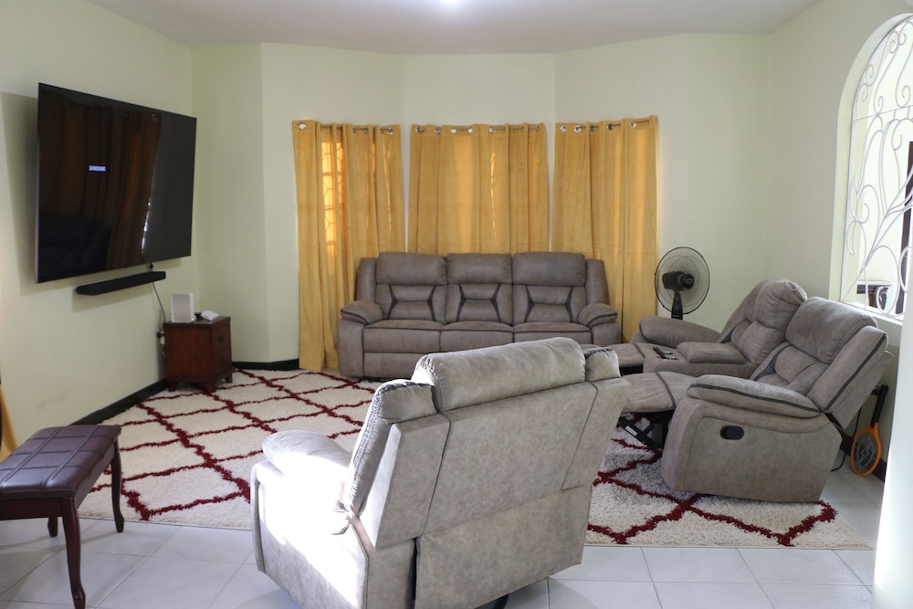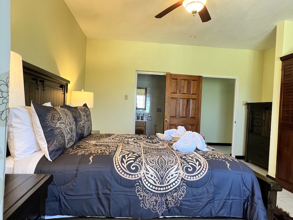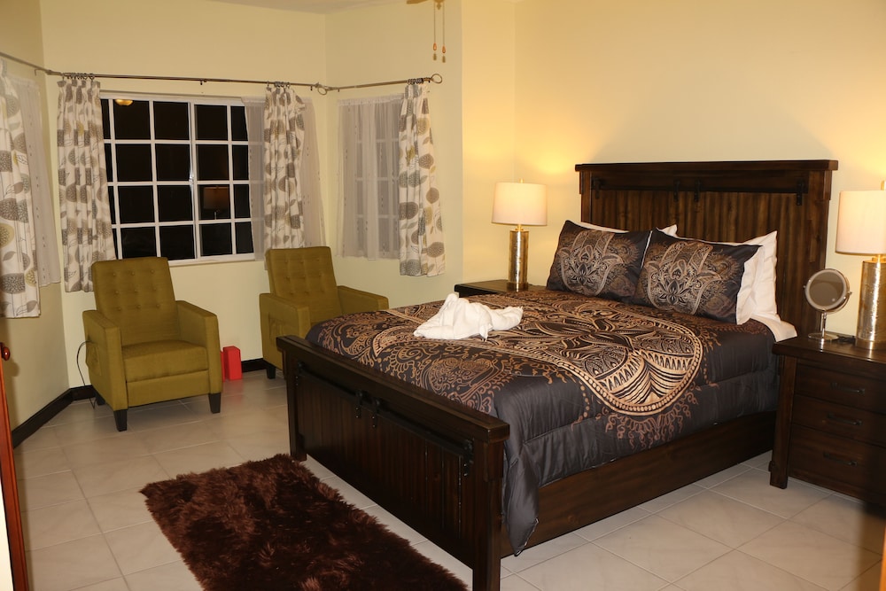 Fra denne villa i Montego Bay (Ironshore) er der kun 4 minutters kørsel til Jamaica Beaches og 10 minutters kørsel til Rose Hall Great House. Denne villa med luksusfaciliteter ligger 10,7 km fra Doctor's Cave Beach og 14,6 km fra Montego Bay Krydstogtterminal. Find dig til rette i denne villa med individuelt møblement. Der er også et køkken med både et køleskab/fryser i fuld størrelse og en ovn. Din seng med topmadras har en dundyne og egyptiske bomuldslagner. Der er et 50-tommers smart-tv med digitale kanaler, som sørger for underholdningen, samt gratis Wi-Fi. Faciliteter inkluderer blandt andet et seperat siddeområde og en mikrobølgeovn. Der er også en telefon med gratis lokalopkald. De viste afstande er afrundet til nærmeste 0,1 kilometer.