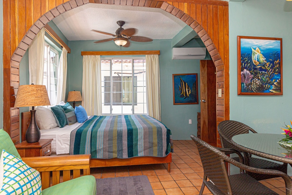 Med et ophold ved Blue Tang Inn i San Pedro er du 0,1 km fra Belize-revet og 12,4 km fra Secret Beach. Denne hytte ved stranden ligger 0,3 km fra Boca Del Rio Beach og 0,4 km fra The Gallery of San Pedro Ltd. Føl dig hjemme i et af de 14 aircondition-afkølede værelser, der indeholder køkken med køleskab og ovn. Værelserne har privat balkon. Der er et 32-tommers fladskærms-tv med kabelkanaler, som sørger for underholdningen, og med gratis Wi-Fi kan du altid komme på nettet. Faciliteter inkluderer pengeskabe og mikrobølgeovne, og rengøring udføres dagligt. De viste afstande er afrundet til nærmeste 0,1 kilometer.