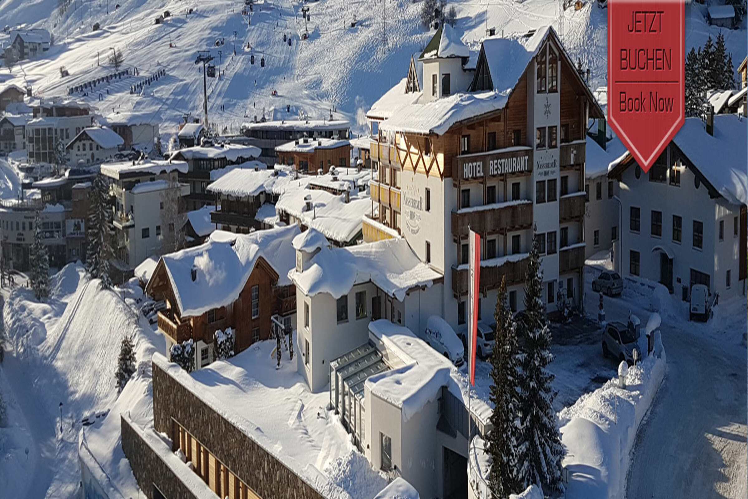Hotel Nassereinerhof, beliggende midt i de smukke bjerge i St. Anton am Arlberg, ligger på den solrige, nordvendte side af dalen. Vi befinder os blot 150 meter fra sportsbutikkerne, skiskolen, pisten og skilifterne, hvilket gør Hotel Nassereinerhof til det helt perfekte hotel i St. Anton am Arlberg til dit næste ophold. Det er en ideel placering for din sommer- og vinterferie! Vi vil med glæde hjælpe dig med at booke din næste ferie på vores hotel