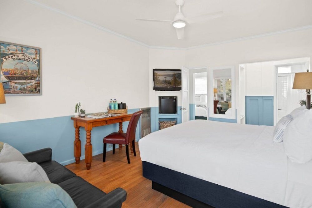 Med et ophold ved Sea Blue Hotel i Santa Monica (Santa Monica Centrum) er du kun få skridt fra Santa Monica Beach og 5 minutters gang fra Santa Monica Pier. Dette hotel ved stranden ligger 2,1 km fra Venice Beach og 18 km fra Hollywood Boulevard. Overnat i et af de 27 værelser, der indeholder LCD-tv. Med gratis Wi-Fi kan du altid komme på nettet. Der er badekar eller bruser på badeværelserne. Faciliteter inkluderer pengeskabe og loftsventilatorer, og rengøring udføres dagligt. De viste afstande er afrundet til nærmeste 0,1 kilometer.