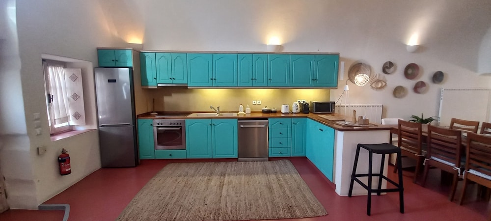 Med et ophold ved denne villa har du en central base i Santorini, kun 1 minutters kørsel fra Santorini caldera og 10 minutters fra Udkigspunktet ved De Blå Kupler. Denne villa ligger 11,3 km fra Athinios Port og 12,6 km fra Det Gamle Thira. Forkæl dig selv med et ophold i denne villa med individuelt design, som har både en pejs og et udendørs privat boblebad. Der er en privat møbleret balkon eller terrasse. Et køkken er udstyret med et køleskab/fryser i fuld størrelse, en ovn og en kogeplade. Der er et 50-tommers fladskærms-tv med satellitkanaler, som sørger for underholdningen, samt gratis Wi-Fi. De viste afstande er afrundet til nærmeste 0,1 kilometer.