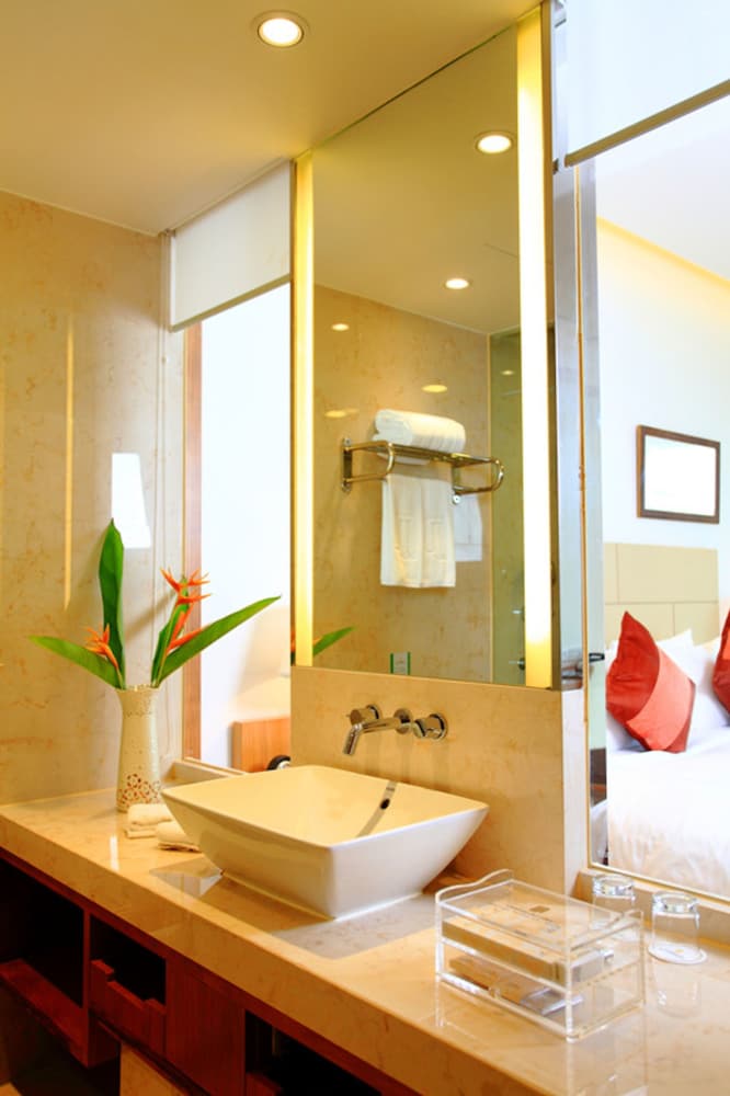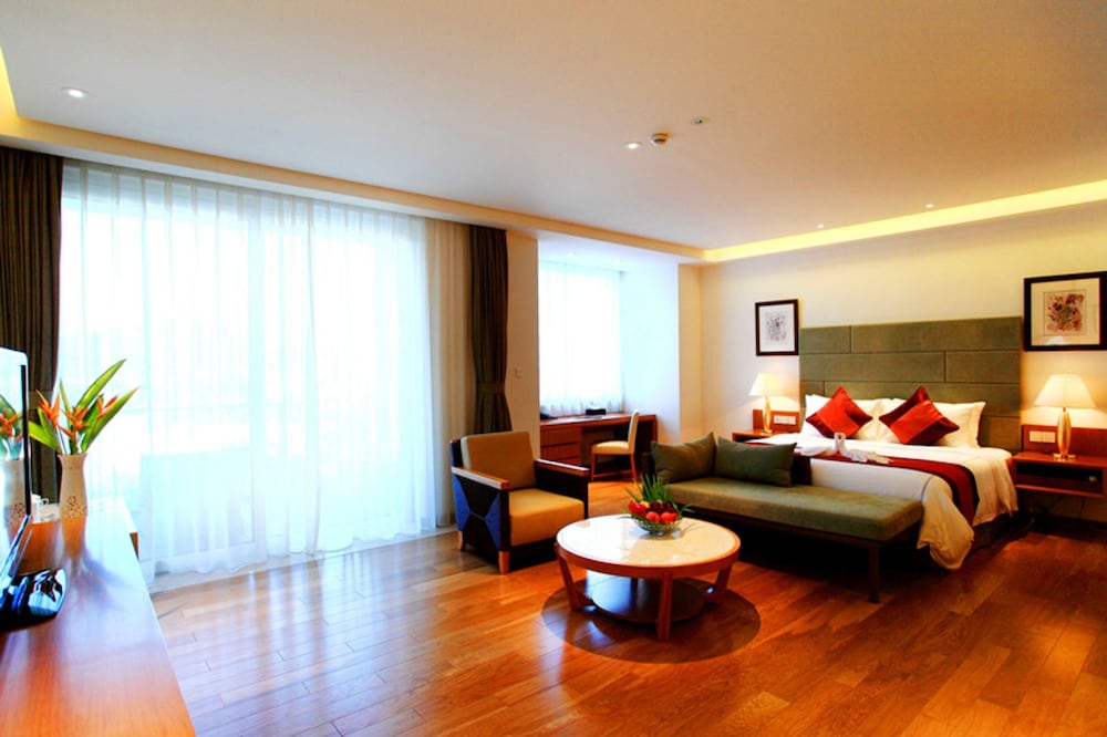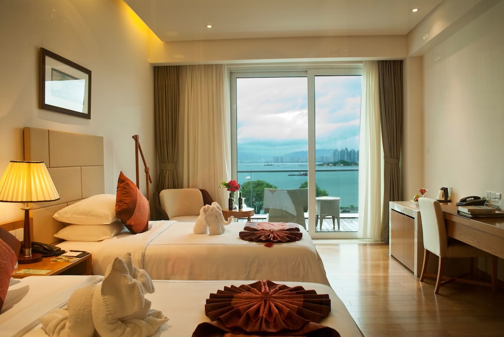 Med et ophold ved Mingshen Golf & Bay Resort Sanya i Sanya (Jiyang Distrikt) er du kun 5 minutters kørsel fra Sanya Bugt og Luhuitou Park. Dette hotel ligger 23,6 km fra Yalong Bay og 2,8 km fra Dadong-havet. Føl dig hjemme i et af de 255 aircondition-afkølede værelser. Med gratis Wi-Fi kan du altid komme på nettet, og kabelkanaler sørger for underholdningen. Værelset har et privat badeværelse med bruser samt gratis toiletartikler og hårtørrer. Faciliteter inkluderer pengeskabe og skriveborde, og rengøring udføres dagligt. De viste afstande er afrundet til nærmeste 0,1 kilometer.