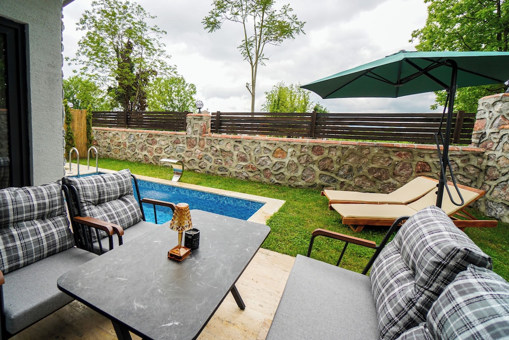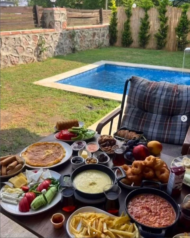 Med et ophold ved Vital Home har du en base i hjertet af Sapanca, kun 5 minutters kørsel fra Sapanca Svævebane og NG Sapanca Bedesten. Denne villa med familievenlig profil ligger 18,6 km fra Kartepe Skicenter og 2 km fra Kirkpinar Strandpromenade. Forkæl dig selv med et ophold i et af de 6 værelser, der er indrettet med individuelt design, og som desuden indeholder pejse og private pools. Din seng er udstyret med egyptiske bomuldslagner, og alle værelserne har en sovesofa i samme størrelse som en enkeltseng. Værelserne har privat møbleret balkon eller terrasse. Der er et køkken til rådighed, som er udstyret med kogeplade. Der er et 105-centimeters LCD-tv med kabelkanaler, som sørger for underholdningen, og med gratis Wi-Fi kan du altid komme på nettet. De viste afstande er afrundet til nærmeste 0,1 kilometer.