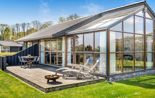 Dette smagfulde sommerhus ved Grønninghoved ligger med en smuk udsigt over vandet fra stue og terrassen. Den åbne stue ligger sammen med køkken, der har en god spiseplads. Her er store vinduespartier, der giver et godt lysindfald til rummet, i havestuen kan I rigtig kan nyde udsigten til vandet, mens I spiser dejlige feriemåltider. Huset er placeret på en stor grund med græsplæne omkranset af hæk, og med terrasser på begge sider af huset så I har mulighed for at finde både sol og skygge.