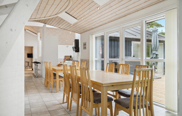 I det naturskønne Skiveren ligger dette skønne feriehus på dejlig stor naturgrund. Huset er utrolig flot indrettet med komfortable møbler, er lækkert udstyret og fremtræder yderst gedigent og altid velplejet, ligesom vedligeholdelsen af huset altid er i top. Den praktiske indretning med fem soverum samt hemsen og to bad gør huset velegnet til ophold for flere familier eller for de tre generationer der ønsker masser af kvalitetstid sammen, her er aktivitetsmuligheder for alle aldre. Den store poolafdeling indbyder til mange timers leg og badeliv. I har udgang til skønne terrasser hvor udelivet kan dyrkes fra tidlig morgen til sen aften. Der er TV i alle soverum, således at man har god mulighed for at fordele sig. Annekset med aktivitetsmuligheder og motionsredskaber er et ekstra aktiv for dette herlige feriehus. Skiveren har skøn strand, dejlig natur og mange vandrestier og er charmerende på alle årstider. De mange nordjyske attraktioner ligger inden for kort kørselsafstand, såsom Skagen, Råbjerg Mile, Ørnereservatet, Nordsømuseet og flere gode golfbaner.