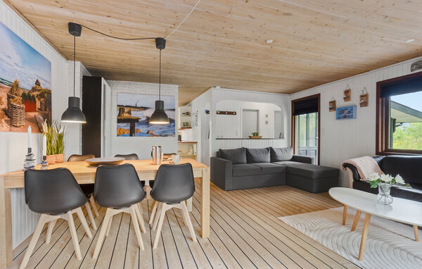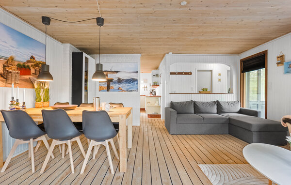 Velkommen til et lyst og åbent, hvor I får et herligt udgangspunkt for jeres ferie i den nordligste del af Vendsyssel. Den smagfulde opholdsstue har trælofter, komfortable siddepladser og store vinduer, der lukker masser af lys ind. Læn jer tilbage med en god bog eller nyd måltiderne sammen ved spisebordet. Køkkenet er godt indrettet til at gøre madlavningen til et fællesprojekt. Badeværelset med spabad er et godt sted at tage et hvil efter dagens udflugter.