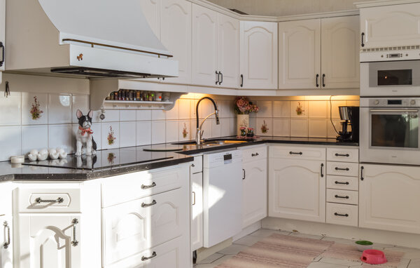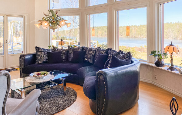 På de varme dage kan I trække ud på den rummelige terrasse med en friskbrygget morgenkaffe og lade blikkene vandre ud over det smukke skue. På den store græsplæne er der god plads til petanque, kroket eller Kubb, og så er der kun en kort gåtur til søen, hvor I kan bade eller fiske fra jeres egen bro. Måske det frister med en tur i saunaen efter en frisk dukkert?