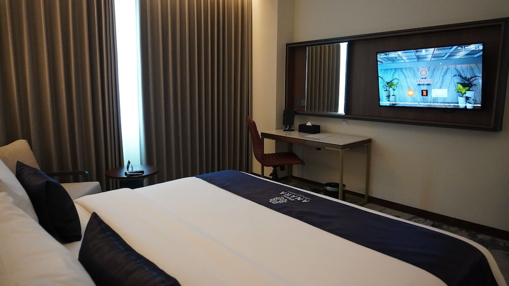 GRAND ANARA AIRPORT HOTEL i Tangerang ligger kun 15 minutters kørsel fra Soewarna Business Park og Damai Indahs Golf og Country Club. Dette hotel ligger 14 km fra By The Sea PIK Shopping Center. Du vil helt sikkert føle dig hjemme i et af stedets 141 værelser. Med gratis Wi-Fi kan du altid komme på nettet. Faciliteter inkluderer skriveborde og rengøring udføres dagligt. De viste afstande er afrundet til nærmeste 0,1 kilometer.