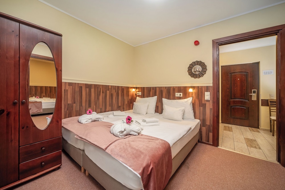 Planlægger du et arrangement i Tápiószecső? På dette hotel er der et område på 90 kvadratmeter til rådighed, bestående af konferencelokaler og mødelokaler. Gratis selvstændig parkering er til rådighed på stedet. Der tilbydes fuld spaservice, hvor du kan nyde massage. Du vil helt sikkert værdsætte de rekreative faciliteter, herunder 2 indendørs swimmingpools, en vandrutsjebane og en sauna. Dette hotel tilbyder desuden gratis trådløs internetadgang og festsal. Nyd et måltid på restauranten, eller køb en snack på dette hotels kaffebar/café. Afslut dagen med en drink eller to i baren/loungen. Gratis komplet morgenmad serveres dagligt fra kl. 07.00 til kl. 10.00. Hotelstars Union tildeler en officiel stjernebedømmelse for overnatningssteder i Ungarn. Dette overnatningssted er blevet bedømt til 4 stars.- Tillægsgebyr for kæledyr: HUF 5000 pr. kæledyr pr. nat