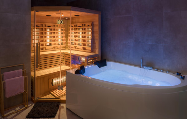 Glæd jer til jeres ophold i dette skønne hus i Perci. Denne moderne ferievilla, beliggende nord for Porec, tilbyder jer alt, hvad I skal bruge til en dejlig ferie. Begynd jeres dage med en forfriskende svømmetur i den private pool og slap derefter af på de komfortable liggestole. Nyd derefter jeres morgenmad på den overdækkede terrasse. Indenfor finder I en lys og stilfuld opholdsstue med komfortable siddepladser. Se en god film eller læs en spændende bog her. Efter en dag med udforskning af regionen kan I slappe af i hotellets sauna eller spabad. Og gå ikke glip af at lave en lækker grillmad på terrassen på lune sommeraftener. Så sæt jer igen i de behagelige hængestole og glæd jer til næste skønne feriedag. Området omkring Perci byder på talrige udflugtsmål. Besøg nærliggende Porec, kendt for sin historiske gamle bydel og den imponerende Euphrasian Basilica. Tilbring solrige dage på strandene ved Adriaterhavskysten eller udforsk regionens naturskønne cykel- og vandrestier. Bemærk: Vandet i poolen er saltvand.