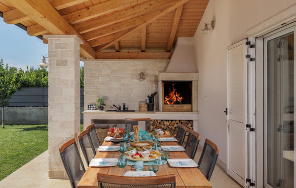 I stueetagen af villaen kan du finde en stue med et TV og en pejs, som er forbundet med spisestuen og et fuldt udstyret rummeligt køkken, i et åbent rum koncept. Hele dette rum har aircondition. I stueetagen er der også et ekstra badeværelse og et afslapningsrum, hvor du kan nyde efter at have brugt tid ved poolen eller udforsket området med cykler til din rådighed. Ved siden af huset er der en overdækket terrasse med hjørne til afslapning i skyggen samt spiseplads og grill. I villaens have er der en swimmingpool og liggestole til din rådighed, samt en boccia-legeplads for sjov. Ejendommen er fuldt indhegnet og har privat parkering til 4 biler. Book din bolig i Villa Karla Tar og tilbring en uforglemmelig ferie med familie og venner.Villa Karla Tar er beliggende i Tar, en by beliggende ved mundingen af floden Mirna og Adriaterhavet. Dette område er kendt for sin fremragende olivenolie, og ifølge eksperter giver oliven, der dyrkes her, den bedste olivenolie i Europa. For alle dem, der ønsker at udforske fortiden, de kulturelle og historiske monumenter, naturlige seværdigheder, nyde gastronomien, men også slappe af og have det sjovt i en af de istriske vandparker, er Tar det ideelle udgangspunkt. Besøg det nærliggende Novigrad, engang en stille fiskerby, der har udviklet sig til et attraktivt turistmål gennem årene, men som har bevaret charmen fra en typisk middelhavsfiskerby. 15 minutters kørsel væk finder du Poreč, en by med rig historie og kulturelle og historiske monumenter. For naturelskere anbefaler vi et besøg i Baredine-grotten nær Poreč. Nærheden af Istriens indre giver utallige muligheder for udflugter. Uanset hvilken retning du går, går du ikke galt.