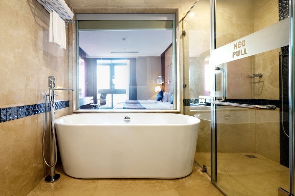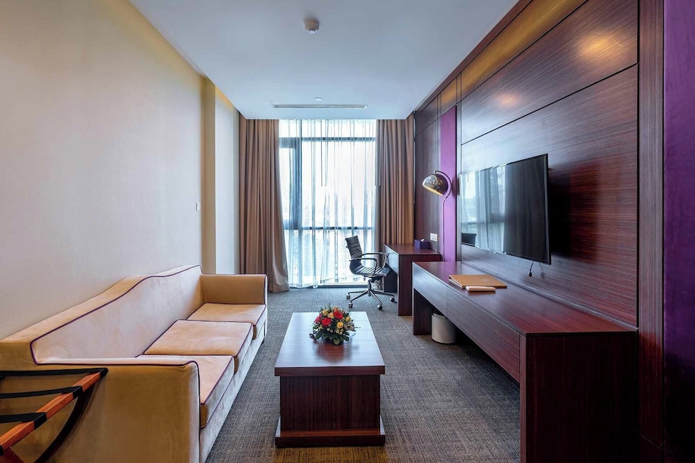 Med et ophold ved Becamex Hotel New City i Thu Dau Mot er du kun 10 minutters gang fra Hikari Complex og WTC Binh Duong New City Expo. Dette hotel ligger 1,5 km fra TTMS SORA Gardens SC og 5,3 km fra Harmonie Golf Park. Føl dig hjemme i et af de 315 værelser, der indeholder køleskab og mikrobølgeovn. Der er gratis internetforbindelse via kabel og Wi-Fi, og et fladskærms-tv med kabelkanaler sørger for underholdningen. Badeværelserne har gratis toiletartikler og badekåbe. Faciliteter inkluderer pengeskabe og skriveborde, og rengøring udføres dagligt. De viste afstande er afrundet til nærmeste 0,1 kilometer.