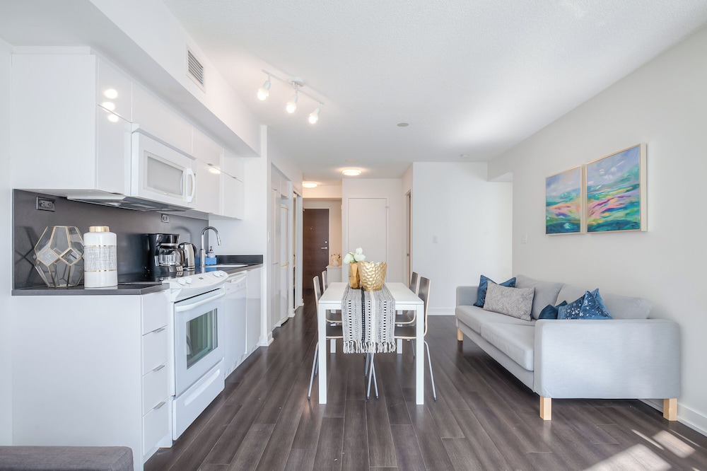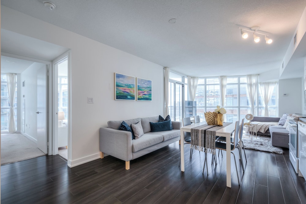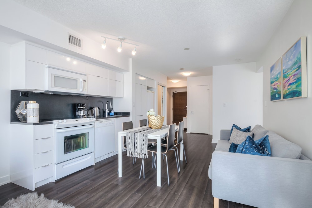 Fra The Aurora Stay, som ligger i Toronto (Toronto Centrum), er der kun 10 minutters gang til Rogers Centre og CN Tower. Dette hotel ligger 0,8 km fra Ripley's Aquarium of Canada og 0,8 km fra Lake Ontario. Føl dig hjemme i et af de 17 værelser, der indeholder køkken med køleskab og ovn. Værelserne har privat balkon. Med gratis Wi-Fi kan du altid komme på nettet. Faciliteterne inkluderer separate siddeområder og mikrobølgeovne. De viste afstande er afrundet til nærmeste 0,1 kilometer.