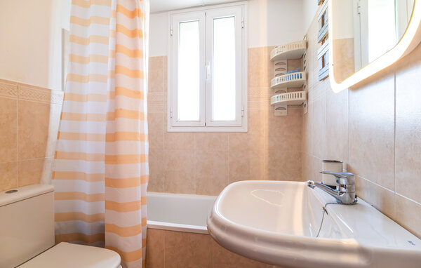 Dage fyldt med sol, hav og afslapning venter jer i denne lyse ferielejlighed, beliggende i en velholdt beboelsesejendom tæt på kysten. Tilbered kulinariske lækkerier i det charmerende køkken med varme træelementer, og nyd hyggelige stunder med brætspil på den komfortable sofa i stuen.