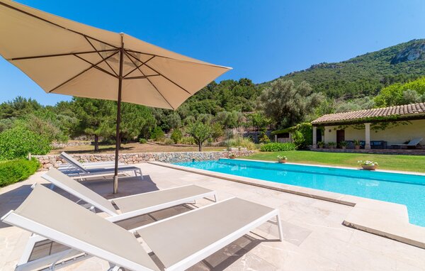 Denne ejendom er et must for alle, der værdsætter en rolig og eksklusiv atmosfære på ferien. Villaen “Son Beltran” opfylder begge krav på en særdeles tilfredsstillende måde. Den enorme ejendom på ikke mindre end 15.000 m² inviterer gæster til at blive hængende og slappe af, som de ønsker. Den parklignende atmosfære på denne ejendom forstærkes af store græsplæner, luftige pladser med naturlig skygge under storslåede træer, blomsterbede, stier og små vægge. Du vil straks føle dig hjemme her. Havens højdepunkt er naturligvis den smukke pool, hvor du kan svømme længder over en længde på 11 m. Poolen er meget let tilgængelig via trapper. Den udendørs bruser, der er installeret lige ved siden af poolen, giver dig mulighed for at tage et hurtigt, forfriskende brusebad, hvorefter du kan finde dig tilpas på en af de komfortable liggestole under middelhavssolen og måske slappe af for en stund. Har du brug for beskyttelse mod de stærke UV-stråler, er der to parasoller til rådighed. Der blev også taget højde for de små gæsters behov, da haven blev designet. Der er også en gynge på den store græsplæne, hvor man kan boltre sig og slappe af. Udearealet byder på særligt attraktive terrassearealer, dygtigt designet og fordelt på forskellige niveauer af denne bolig med en unik grundplan. De flisebelagte overdækkede terrasser er i stueetagen, og stenterrassen er lidt højere og byder på en fortryllende udsigt. Dette område kan tilgås udefra via en rustik trappe, der fører til tagterrassen, som måske er den mest luksuriøse udendørs siddeplads denne ejendom har at tilbyde. Smagfulde udendørsmøbler inviterer dig til at slappe af på en af terrasserne eller spise en hyggelig middag ved spisebordet. Du kan tilberede og nyde friske, regionale delikatesser på den udendørs grill, mens du nyder den fantastiske udsigt over den fortryllende haveidyl. Dette er et Fincallorca feriehus. Når man træder ind i huset, står det med det samme klart, at den dygtige udformning af udearealet i hvert fald matcher interiøret. Her finder vi en meget vellykket kombination af æstetiske materialer og møbler samt dygtigt brugte dekorative elementer, især i form af inspirerende kunstværker på væggene. Stuen imponerer med sin rummelige naturstensvæg og den matchende brede sofa, som er yderst behagelig og inviterer dig til at slappe af på ethvert tidspunkt af dagen. På kølige dage kan du endda bruge pejsen til at holde dig varm og dermed sikre en uforlignelig komfort. Det bidrager de klassiske træbjælkelofter og de smukke gulvfliser bestemt til. Køkkenområdet er præget af et meget originalt design. Her finder du ikke kun et elegant designet og fuldt udstyret køkken med elkedel og Nespresso kaffemaskine. Køkkenet har også et meget karakteristisk opholdsområde med stenvægge, lidt adskilt fra resten af rummet, perfekt til at sidde og nyde et måltid. De runde buer, der understøtter de enkelte siddepladser, samt det usædvanlige loftdesign gør dette til et helt specielt sted. En anden mulighed for spisning finder du udenfor køkkenet ved det smukke, massive træbord, som kan rumme op til seks personer. Alle soveværelser (et med eget badeværelse) er indrettet til en høj standard og har smukke og unikke designs. Alle vil finde den rigtige rasteplads, der passer til deres smag. Følgende senge er tilgængelige for gæster: tre senge på 1,80 x 2,20 m og to senge på 0,90 x 1,90 m. Badeværelserne er også smagfuldt indrettede. De er generøst store og indrettede i en komfortabel og moderne stil. Du behøver ikke at medbringe en hårtørrer. Valldemossa blev engang kåret som den smukkeste landsby i Spanien og er bestemt et besøg værd. Der er forskellige smukke strande i nærheden af denne maleriske landsby. For eksempel: Cala Deìa (13 km væk) med sit krystalklare vand eller den lille stenstrand i Port de Valldemosse (6 km). Den nærmeste sandstrand ligger omkring 20 km væk i Puerto de Sóller. Den livlige ø-metropol og dens smukke gamle bydel kan nås på omkring 35 minutter. Villaen “Son Beltran” med havudsigt er et særdeles smagfuldt renoveret feriehus med en fantastisk beliggenhed på den vestlige del af øen. De maleriske landsbyer Deìa og Valldemossa med utallige barer, restauranter og indkøbsmuligheder ligger hver kun få minutter væk i bil. Den smukke badebugt "Cala de Deìa" er også let at nå. Palma de Mallorca lufthavn ligger omkring 27 kilometer væk.