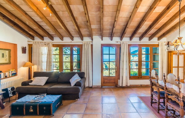 Villaen "Cancos" er ideelt beliggende i den vestlige del af Mallorca, indlejret i en 1.500 m² stor grund omgivet af betagende middelhavsnatur. Dette naturstenhus byder på en betagende udsigt over Middelhavet og Mallorcas maleriske sydvestlige kyst absolut privatliv for en afslappende ferie Dette er et Fincallorca feriehus. Der er en stor terrasse foran huset, på den ene side er der en pool i form af et 8-tal for børn. er sikker og har et separat fladt område. Adskillige siddepladser omkring ejendommen giver gæsterne mulighed for at slappe af, mens de nyder de rolige omgivelser. det veludstyrede køkken byder på alt hvad du behøver for en hyggelig ferie med egen forplejning. Der er to smukt indrettede dobbeltværelser og et dejligt badeværelse med naturligt lys. Med sine charmerende møbler, traditionelle elementer og rolige omgivelser er "Cancos" et stærkt anbefalet tilflugtssted for alle, der ønsker at tilbringe en uforglemmelig ferie på en af Mallorcas mest maleriske steder nær Valldemossa på Mallorcas vestkyst. Valldemossa, med sine ekstremt gode restauranter, barer og supermarkeder, er kun omkring fem minutter væk i bil. Den smukkeste landsby i Spanien vil nok også invitere dig til at slentre gennem de smalle gader dekoreret med frodige blomster. Badebugten Cala Deìa med krystalklart vand og en fiskerestaurant kan nås på cirka 15 minutter.