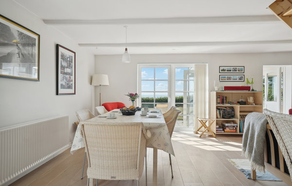 Glæd jer til en skøn familietid i dette dejlige feriehus i to etager. Husets atmosfære er gennemsyret af et bevidst farvevalg. Stedet er en drøm af hvid og beige samt store vinduer som perfekte ingredienser til en følelse af ro, varme og balance. Den opvarmede havestue med panoramavinduer er et helt perfekt sted til dejlige familiemåltider og brætspilshygge. Vinduerne bringer naturen og smukke solnedgange indenfor. På 1. sal finder I endnu et hyggeligt opholdsområde. I kan også tage maden med ud på terrassen og nyde en solbeskinnet morgenmad med udsigt til fjord og grønne trækroner. Børnene har sikkert ikke tid til at sidde alt for længe ved havebordet, for der er en dejlig græsplæne at boltre sig på. Efter morgenmaden kan I gå ned til den familievenlige sandstrand, hvor I kan bygge sandslotte, forfriske jer i vandet eller kaste fiskesnøren ud.