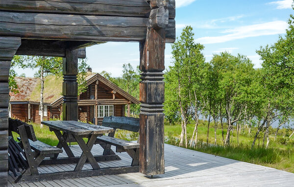 Denne imponerende bjælkehytte kombinerer rustik charme med moderne komfort og ligger i et idyllisk landskab på kanten af Hardangervidda, et af de største højsletter i Europa. Feriehuset emmer af en hyggelig atmosfære takket være den traditionelle konstruktion med tykke træbjælker og græstag. Indenfor finder I lyse, rummelige opholdsarealer, der lægger op til gode hyggestunder. Sofaerne arrangeret i forskellige stuer giver den optimale plads til afslappende aftener efter en dag med eventyr. Vinduerne giver et bredt udsyn til den omkringliggende natur. Lav mad sammen i det moderne køkken og nyd jeres måltider med udsigt over bjergene.