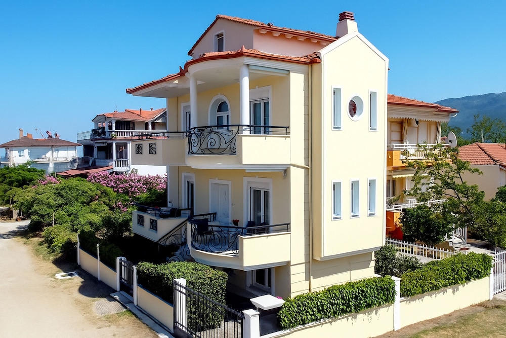 Prime Luxury Villa Beach Front ligger på stranden i Volvi, kun 6 minutters kørsel fra Asprovalta Strandpromenade. Denne villa ligger 2,1 km fra Néon Vrasnón Strand og 4,6 km fra Det Nordlige Grækenlands Museum for Mineraler og Sten. Du vil helt sikkert føle dig hjemme i et af stedets 7 værelser. De viste afstande er afrundet til nærmeste 0,1 kilometer.