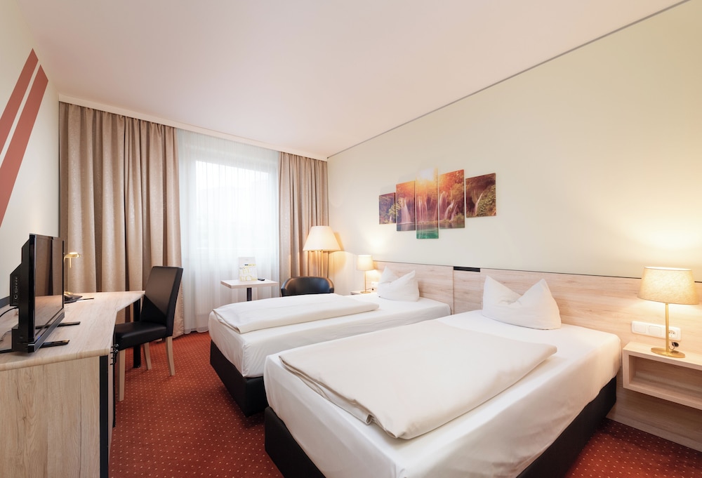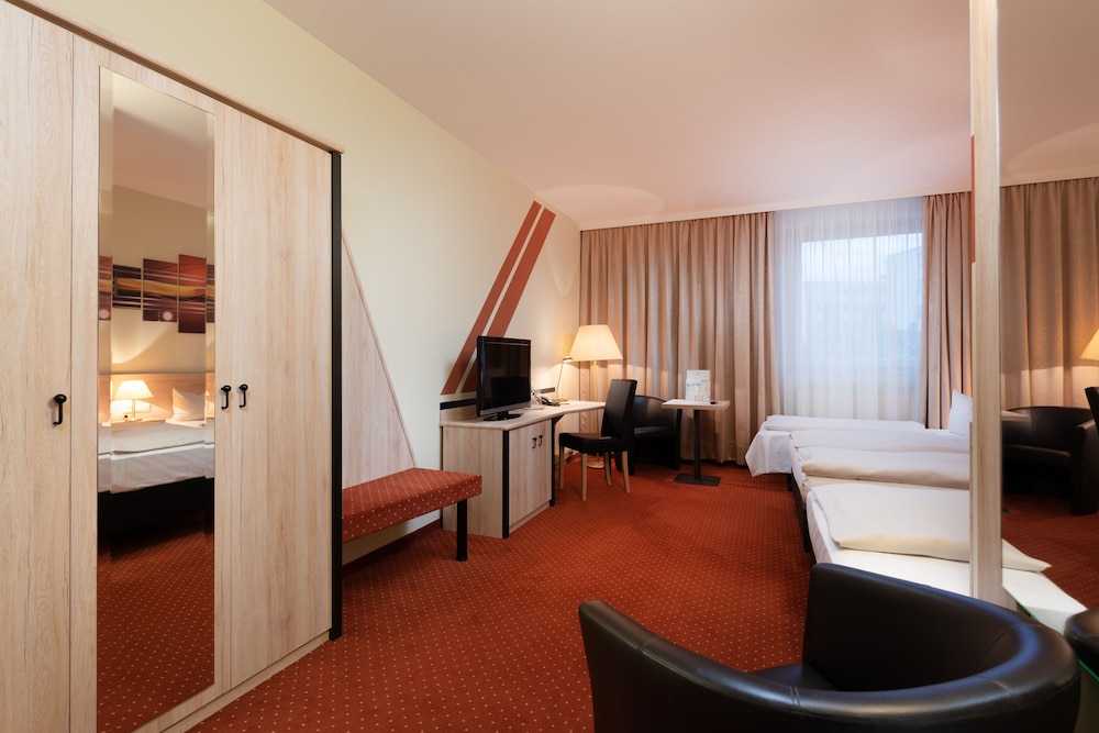 NOVINA HOTEL Südwestpark Nürnberg ligger i en regionalpark i Nürnberg, kun 10 minutters kørsel fra Justizpalast Nürnberg og Deutsche Bahn Museum. Dette hotel ligger 5,7 km fra Germanisches Nationalmuseum og 6,8 km fra Schöner Brunnen. Overnat i et af de 252 værelser, der indeholder fladskærms-tv. Med gratis Wi-Fi kan du altid komme på nettet, og satellitkanaler sørger for underholdningen. Værelset har et privat badeværelse med bruser samt gratis toiletartikler og hårtørrer. Faciliteter inkluderer telefoner samt skriveborde og gratis mineralvand på flaske. De viste afstande er afrundet til nærmeste 0,1 kilometer.