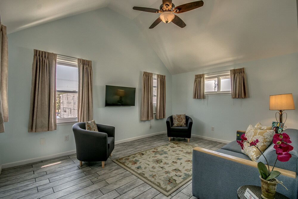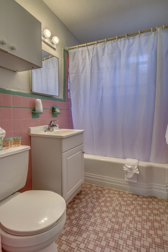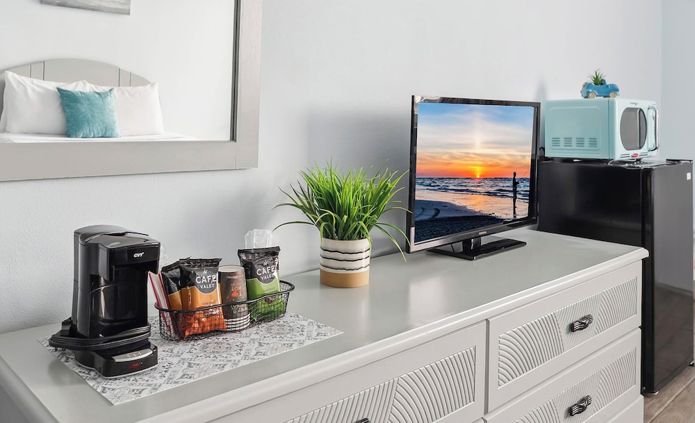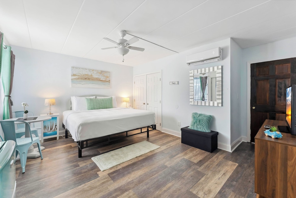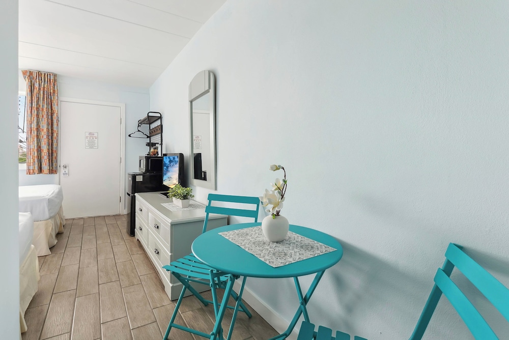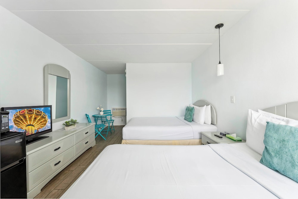 Med et ophold ved Daytona Inn And Suites i Wildwood, befinder du dig i et forretningskvarter, blot 10 minutters gang fra Splash Zone Water Park og Wildwoods Convention Center. Dette motel ligger 0,2 km fra Morey's Piers og 0,6 km fra Raging Waters Water Park. Føl dig hjemme i et af de 43 værelser med individuelt møblement, der desuden har køleskab og mikrobølgeovn. Et tv med kabelkanaler sørger for underholdningen. Værelset har et privat badeværelse med en kombination af bruser/badekar samt gratis toiletartikler og hårtørrer. Faciliteter inkluderer kaffe-/temaskiner, og rengøring udføres dagligt. Der kan anmodes strygejern/strygebræt. De viste afstande er afrundet til nærmeste 0,1 kilometer.