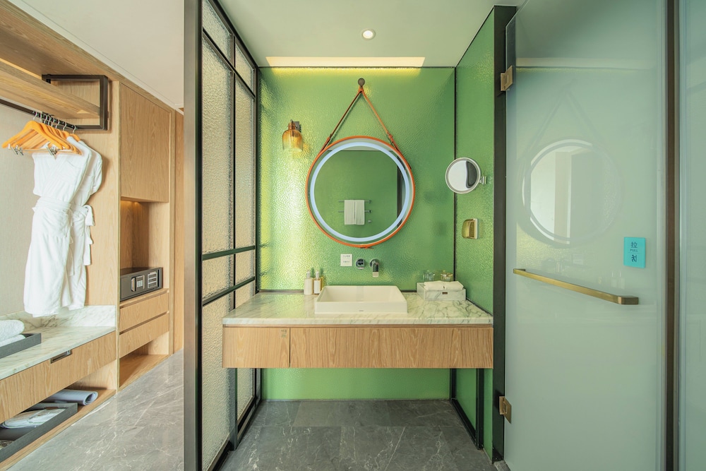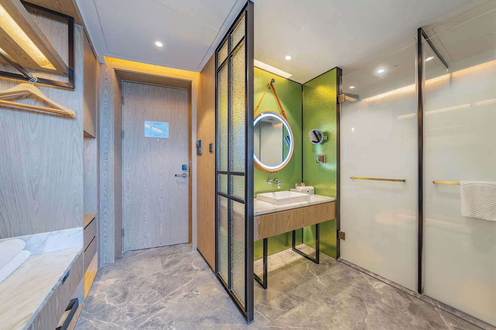 Med et ophold ved Holiday Inn Zhuhai City Center by IHG har du en base i centrum af Zhuhai, blot 10 minutters kørsel fra Almeida Ribeiro Street og Ruinerne af Skt. Pauls Katedral. Dette hotel ligger 9,4 km fra Macau Fiskerkaj og 9,9 km fra Lisboa Kasino. Føl dig hjemme i et af de 80 aircondition-afkølede værelser, der desuden indeholder smart-tv. Din seng har topmadras og er udstyret med dundyner og premium-sengetøj. Der er gratis internetforbindelse via kabel og Wi-Fi, og med smarte højttalere og satellitkanaler er der også sørget for underholdningen. Værelset har et privat badeværelse med bruser samt brusehoved med spredningseffekt og designertoiletartikler. De viste afstande er afrundet til nærmeste 0,1 kilometer.